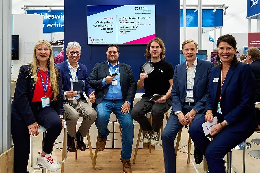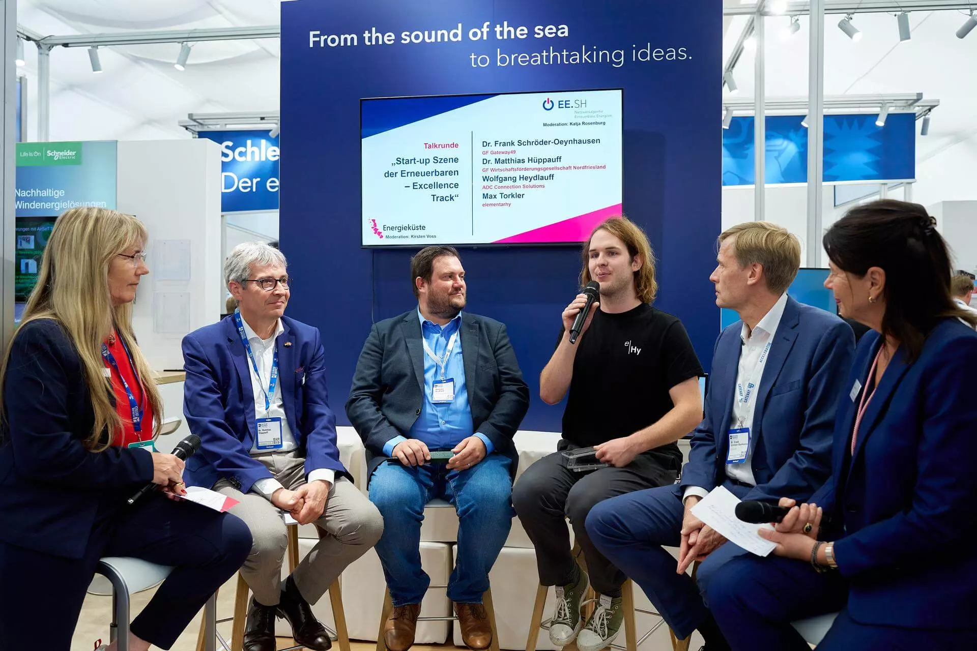 Was tut sich bei Gründern, jungen Unternehmen und dem Startup Accelerator GATEWAY49 an der Westküste? Kirsten Voss, Projektleiterin Energieküste moderierte gemeinsam mit Katja Rosenburg, EE.SH Schleswig-Holstein Renewable Energy Network Agency EE.SH, einen Talk mit Dr. Frank Schröder-Oeynhausen, GF GATEWAY49, Dr. Matthias Hüppauff, GF Wirtschaftsförderung Nordfriesland, Wolfgang Heydlauff, GF ADC Connection Solutions GmbH, und Max Torkler von elementarhy.