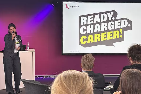 Für die Schulklassen und Studenten, aber auch für Um- und Quereinsteiger stellte die Energieküste ihre Fachkräfte-Kampagne Ready.Charged.Career! vor - im Rahmen der Session „Arbeitsplatz Energiebranche: Willst du mit uns gehen?“ ihres Partners watt_2.0 e.V..