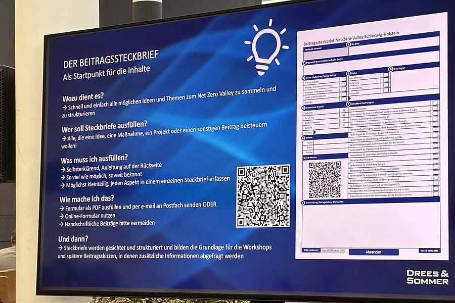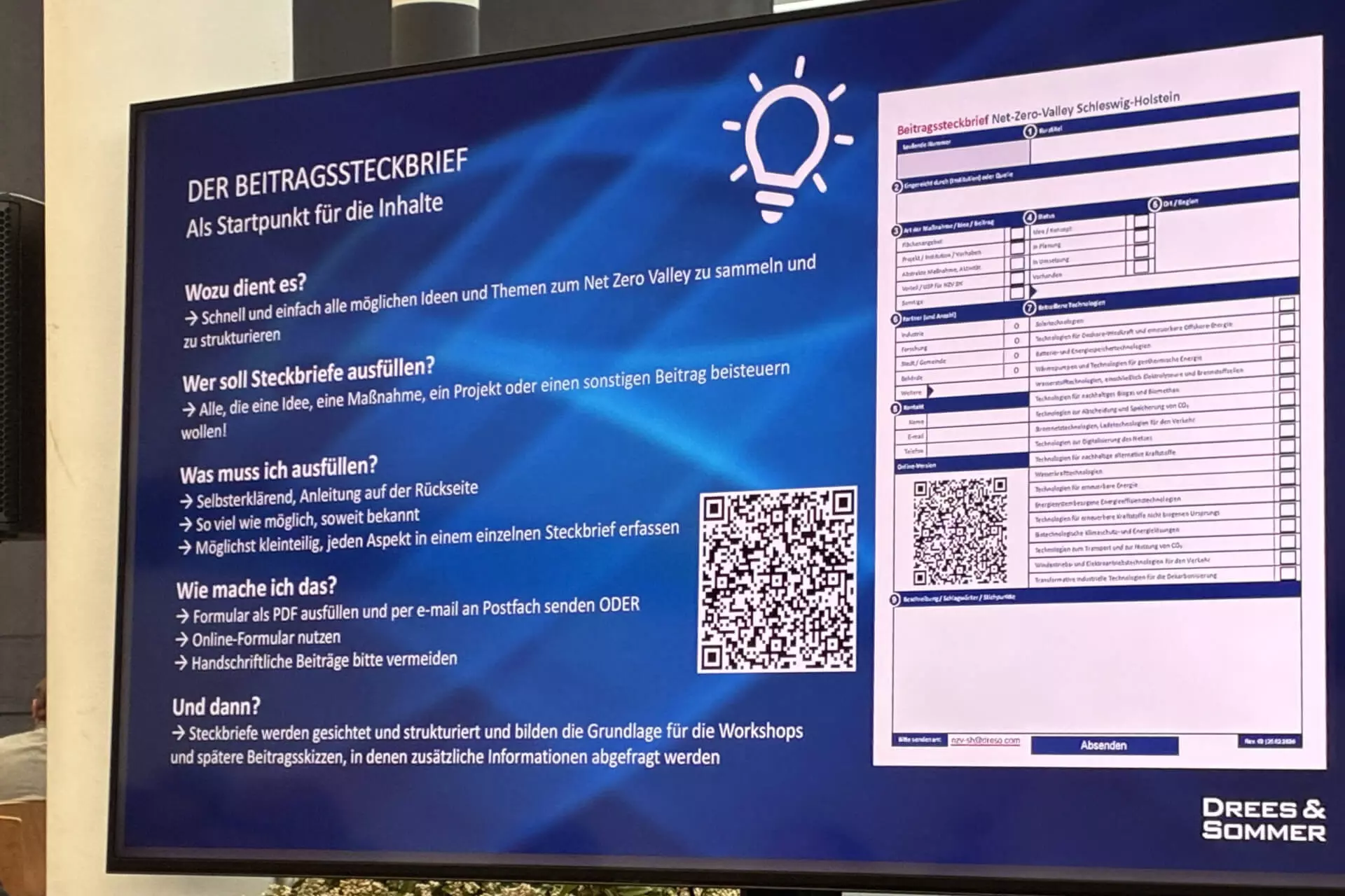 Die Bewerbung Schleswig-Holsteins zu unterstützen ist ganz einfach: Online am Laptop oder Handy einen Steckbrief mit Ihren nachhaltigen Projekten, Ideen und Technologien ausfüllen. Abschicken und damit auf die zahlreichen Vorhaben und starke Netzwerke hinweisen, die Schleswig-Holstein zum Hot Spot für Netto-Null-Technologien machen. Wichtig: Ihr Steckbrief muss bis zum 10. April 2026 ankommen!