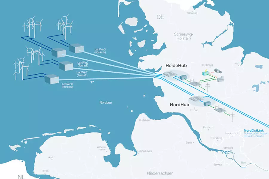 Der „HeideHub“ in den Gemeinden Lieth und Wöhrden soll ab 2030 große Mengen an Windstrom von Offshore-Windparks in der Nordsee ins regionale Netz einspeisen und über das geplante Erdkabelprojekt NordOstLink in Richtung Mecklenburg-Vorpommern und von dort nach Süddeutschland leiten. Zudem entsteht auf dem Gelände ein Konverter für die Gleichstromleitung Korridor B, die Windstrom nach Nordrhein-Westfalen transportiert. An dem laut dem Betreiber „ersten Multiterminal-Hub in Deutschland“ enden dann zwei Offshore-Netzanbindungen namens LanWin2 (TenneT) und LanWin3 (50Hertz), die allein bis zu vier Gigawatt Windstrom aus der Nordsee an Land bringen. Über die Gleichstromverbindung NordOstLink wird ein Großteil des Windstroms weiter zum SuedOstLink+ geführt und damit in den verbrauchsstarken Süden Deutschlands geleitet. Es wird jedoch auch Energie direkt an der Westküste und in der Region zur Verfügung stehen. Mehr als zehn Millionen Haushalte können theoretisch so mit grünem Strom versorgt werden.